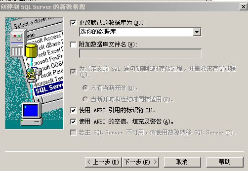开始 -> 设置 -> 控制面板 -> 管理工具 -> 数据源 (ODBC) -> 添加 -> 选择"SQL Server" ->