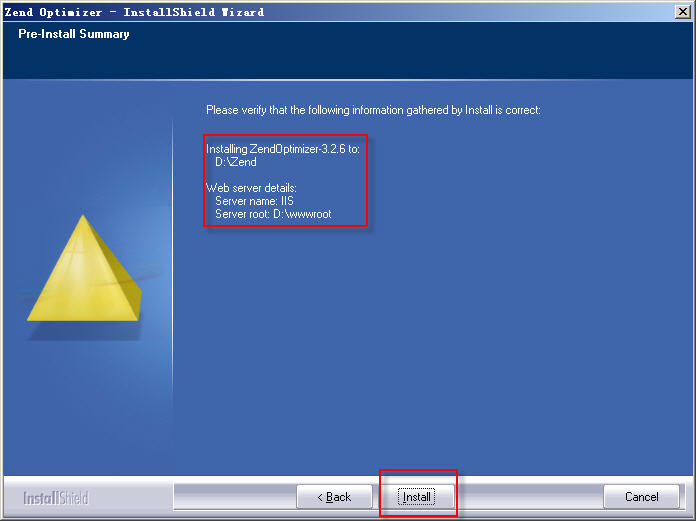 1)执行下载的ZendOptimizer-3.2.6-Windows-i386.exe,安装过程请按照以下图示进行安装,完成后将确保*的Zend正常运行。