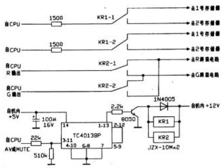 存储器为24C01A,可存30 个台,按图重电路进行升级,用CPU(IC1102)的第 12 脚(AV 控制