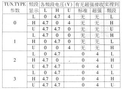 创维8000Y-2122(3Y01)机为新型数码总线控制彩电,其检修思路与普通模拟彩电不同。从故障现象分析,应首先从CPU、存储器数据或系统设置开始进行检查。调出工厂菜单观察(按遥控器菜单进入图像菜单,再依次按交替键和静音键进入,按菜单键退出),并没有超强接收功能开关这一项。分析其超强接收原理,主要还取决于CPU输出的频段控制电压,在全自动搜台时,发现所搜到的台与字符显示的频段不一致,故再次进入工厂菜单(定时键切换)切换到第五子菜单,此项菜单内TUN.TYPE项,可调整其高频头频段转换电压,改变TUN.TYPE为1、2、3(原值为0)试之,当调到2时,超强接收功能字符显示且有效,同时搜到台的频段与字符显示频段也完全一致,故障排除。TUN.TYPE四种参数0、1、2、3,见附表,仅供同行参考。