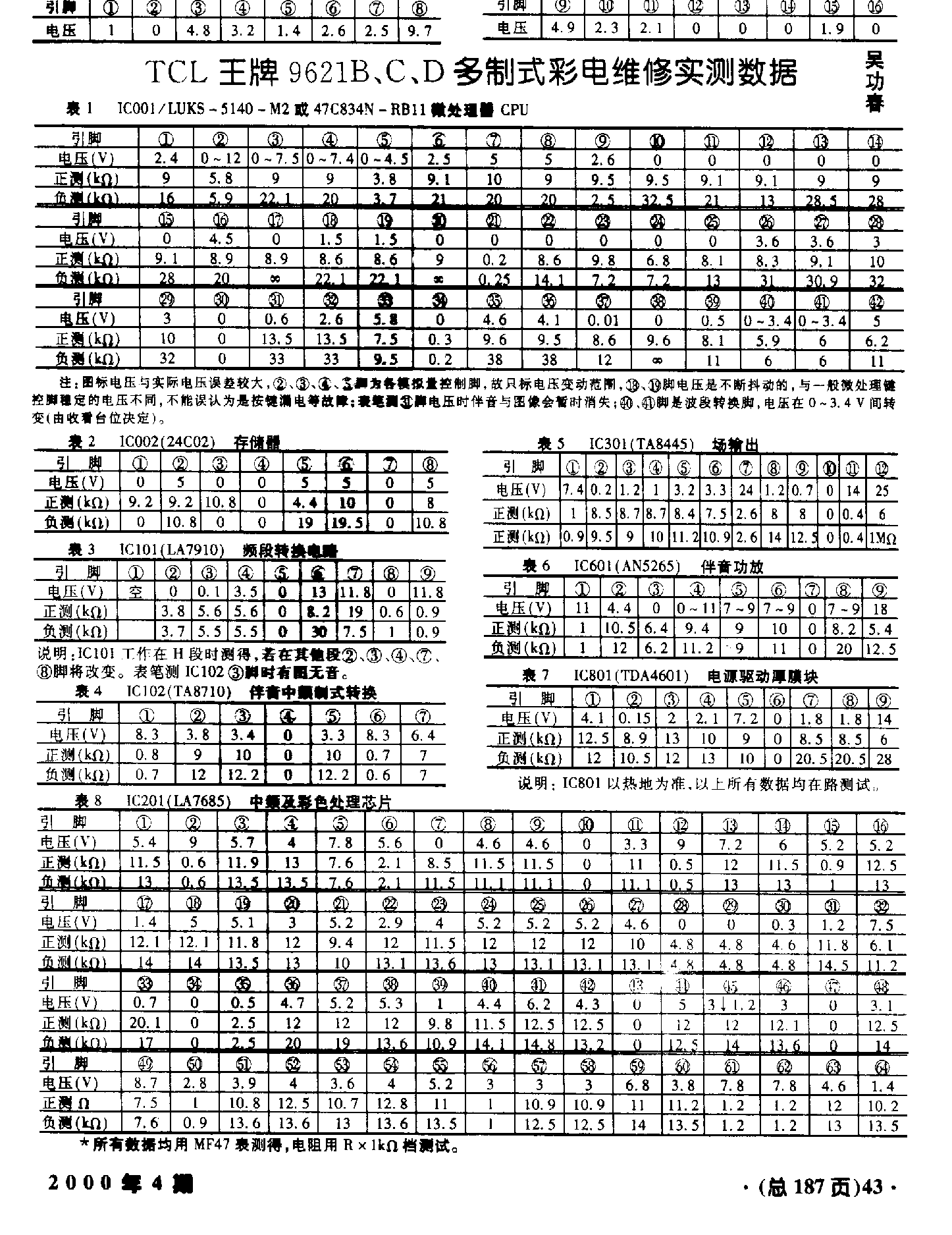 TCL9621B彩电的数据cpu是47c834n-r191,解码是L...