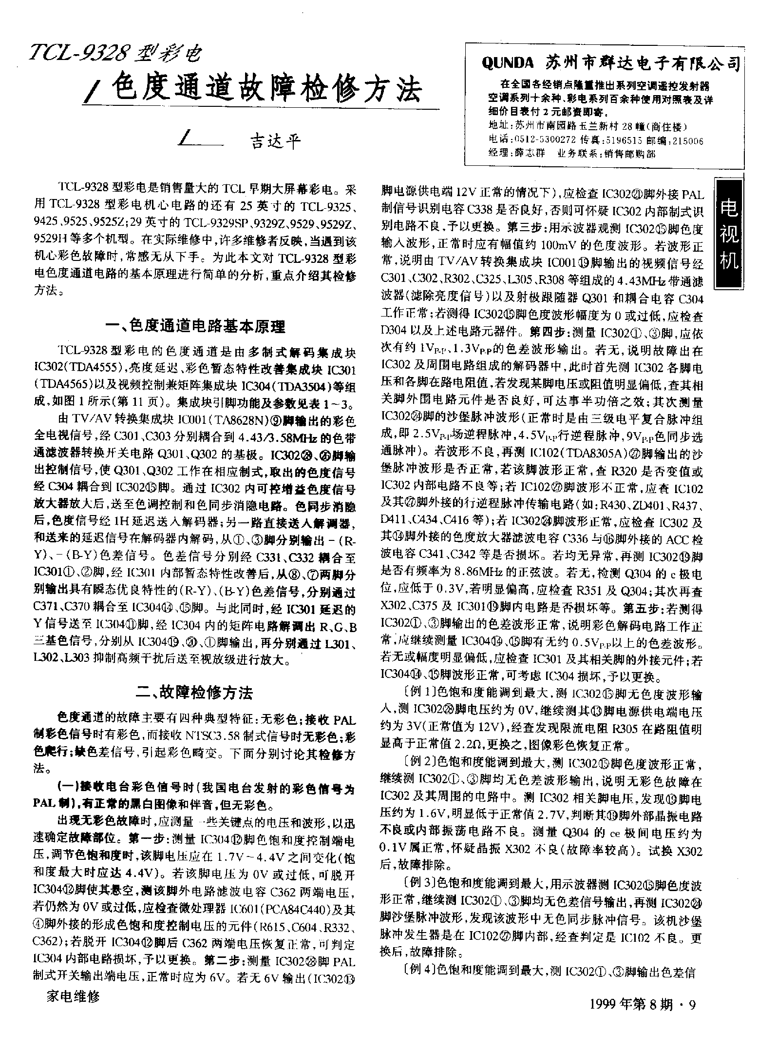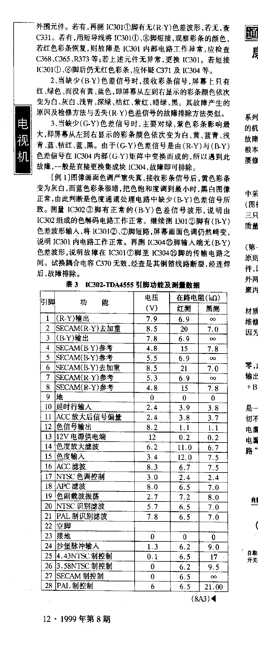 彩电屏幕回扫线故障的常见原因及检修技巧