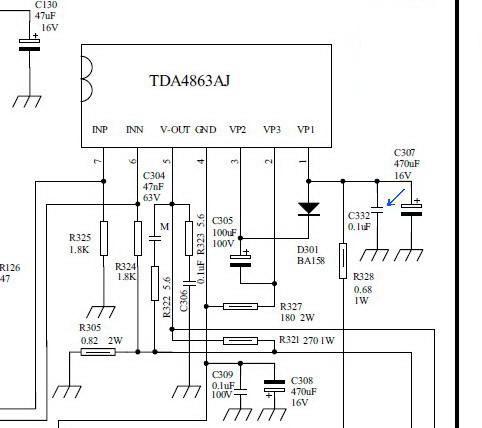 C133为16V/100u电容,此电容是TDA8370 vp1#39供电滤波电容,更换无效?