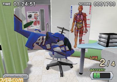 在整个自己房间以及市镇乘超小型的直升飞机飞来飞去吧! 本收成能享用作为飞机现实的举动的飞行行动比赛。把Wii遥控鉴定为驾驶,能在室内以及近邻的空中乘塑料模型大小的小型直升飞机飞来飞去。并且一边飞行,一边瞄准目标射击,收回宝贝,搬运如何游戏各种各样。分割画面,是与朋友的一起玩。另外,能对机体零件进行自定义。