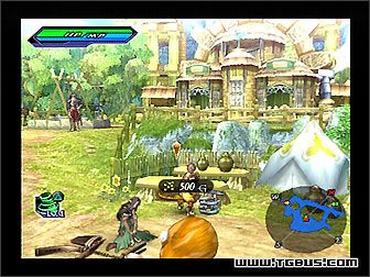 イル村の迹地 进入村子按照RPG惯例尽量和所有人对话,这里有武器商。村子里的的很多东西都可以破坏,不过不是自动拾取的,需要自己捡。有些道具捡到后是未鉴定的状态,需要到武器商那里花点钱鉴定,打破半人马搭档前的罐子就能得到一个未鉴定装备。之后向着有红色箭头标示的地方前进。