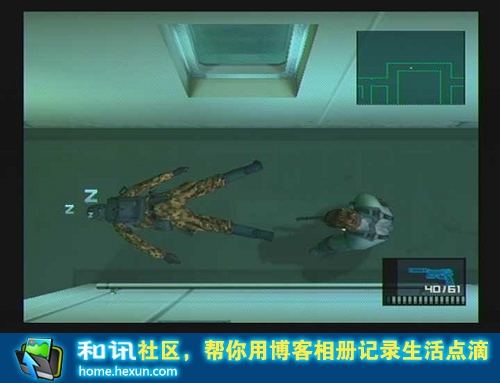 刚到三楼,就接到otacon的电话,有监视系统,靠墙走就可以避开他。