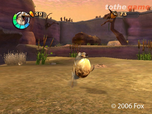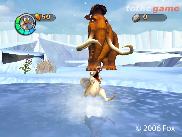20世纪福克斯公司的动画电影《Ice Age 2 The Meltdown》的游戏,犬齿松鼠斯科莱特(Scrat) 将继续他的寻找橡树果之旅。他会进行挖掘、游泳、嗅探、打滚等各