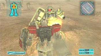 刚刚奋力击倒一部渣古II,突然另一部渣古II从背后偷袭,击毁了吉姆持枪的右臂。这下糟了,没武器了,无论如何也不能让新型MS落入敌人手中,只有逃命了!