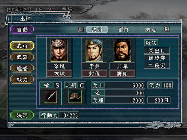 武将人选也要认真的考虑,这代的特技系统很精妙(特技系统见特技篇)特技用