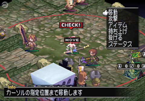 战斗使用的是回合制,角色可在一圆圈所示的范围内自由移动。