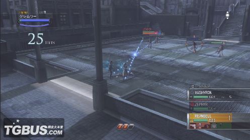 4.角色移动(LS):这个回合半即时制里,在角色行动槽仍未空时,玩家便能控制角色行动,也可以给角色一条行进路线(X键),让他自动奔跑,然后在这个过程中对敌人进行有效攻击。 心得建议:本战斗系统的特色与华丽,在于角色自动奔跑时作出的一连串攻击。当然,当不考虑集体攻击或在占据有力地势时,不移动直接攻击也可以的。当角色跑动路线途径其余两队友中间,他跑动时瞄准时间将大大缩短,威力及准成也增加,多考虑队友走位达成这有利的攻击条件。