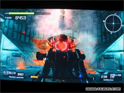 如果觉得以上方法很难瞄准,OK,那我们来点简单的。触手有一种攻击是连续拍打地面三次,用Y键躲避其攻击,将视角平行于BOSS,待他的第三次拍地攻击后,有一定时间的硬直,这时用机关枪封锁其行动在用火箭筒攻击就可以得到很高的命中率。之不过多了躲避的风险。不过,即便第一架VS坏了也没关系,因为另一边还有一部高机动的VS。这里要注意的是,第一次成功进入小洞并攻击后,BOSS就会不断的开始放出大型水母,这些水母的攻击没有任何伤害,但却会放电对VS和主角造成很长时间的硬直且供积分范围很大,触手的攻击将会让你很难堪,所以,看到一个就打掉一个吧。别留下来一堆最后收拾。