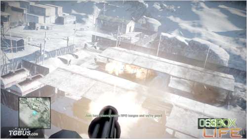 剧情过后继续前进会来到一座小村庄,在这里将要与敌人来场巷战,由于这里的敌人从拿狙击型散弹枪到拿RPG的都有,所以在进行这里的战斗时请多加小心自己的安全,要不然在这里挂掉又得从一开始的地方重来了。一路慢慢前进,来到靠近任务点时先别急着走下楼梯,请先在上面找好掩体对下方的敌人进行攻击,过一下子后会有一台敌军装甲车出现, 按照惯例使用你的榴弹发射器就能轻松解决掉它了。