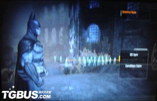 石像鬼上被安装了炸弹 前进没几步,蝙蝠侠突然头痛,然后就花屏了,这时玩家不要着急,机器只要没三红就没事,稻草人这次的登场着实让人吓一大跳。之后会出现游戏的开场CG动画,蝙蝠车开了出来,我们却发现是小丑在驾驶,蝙蝠侠被绑在后面,进了阿甘病院后,玩家控制的角色变成了小丑,蝙蝠侠被绑在上面,最后,小丑掏出了沙鹰,上演了如同使命召唤4里面杀死总统的那一幕场面,蝙蝠侠被杀掉了。这时游戏会出现Retry的选项,选择以后蝙蝠侠会从坟墓里面爬出来,经过一段跑路和牵引器,我们来到了和巨大的稻草人的第三次交锋的现场。这次的与稻草人的战斗是最长的,综合了之前的所有要素,玩家终于爬到蝙蝠灯时又会掉下去,然后和很多杂兵,还有一只骷髅型泰坦战斗,全部战斗结束后稻草人被打败,进入剧情动画。